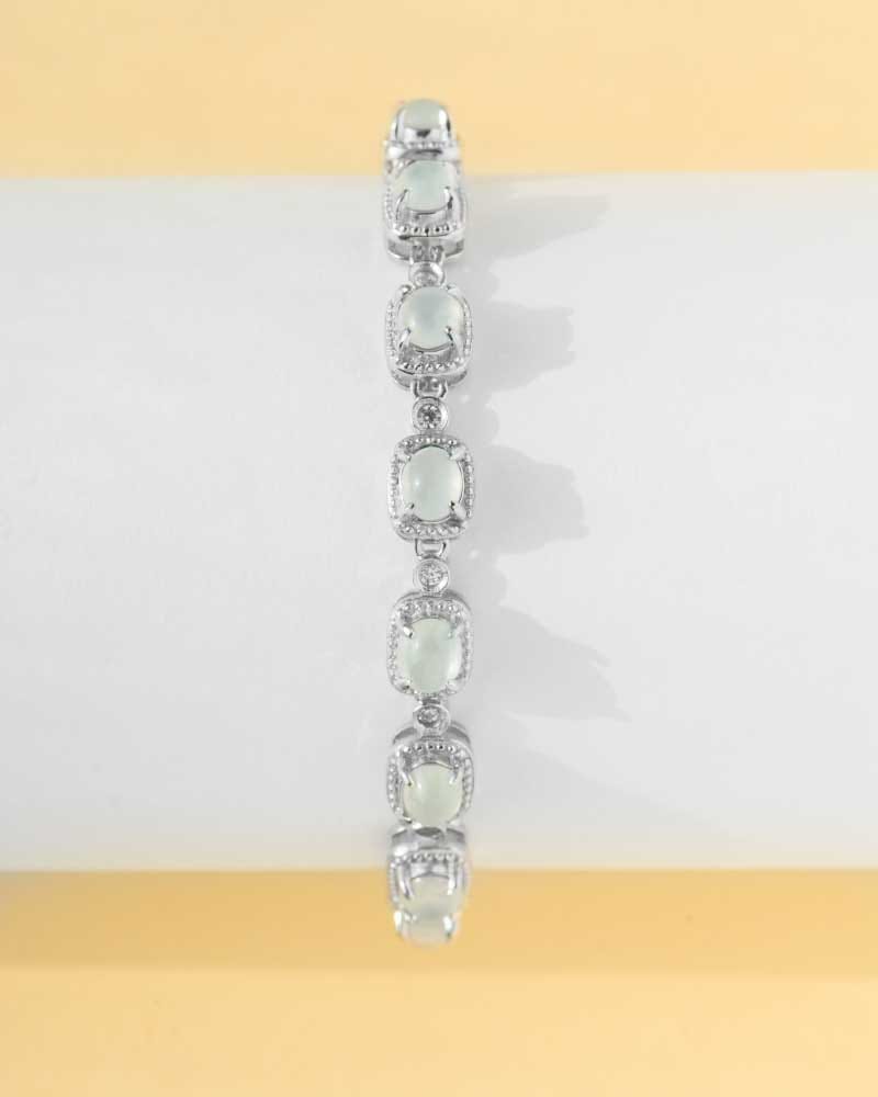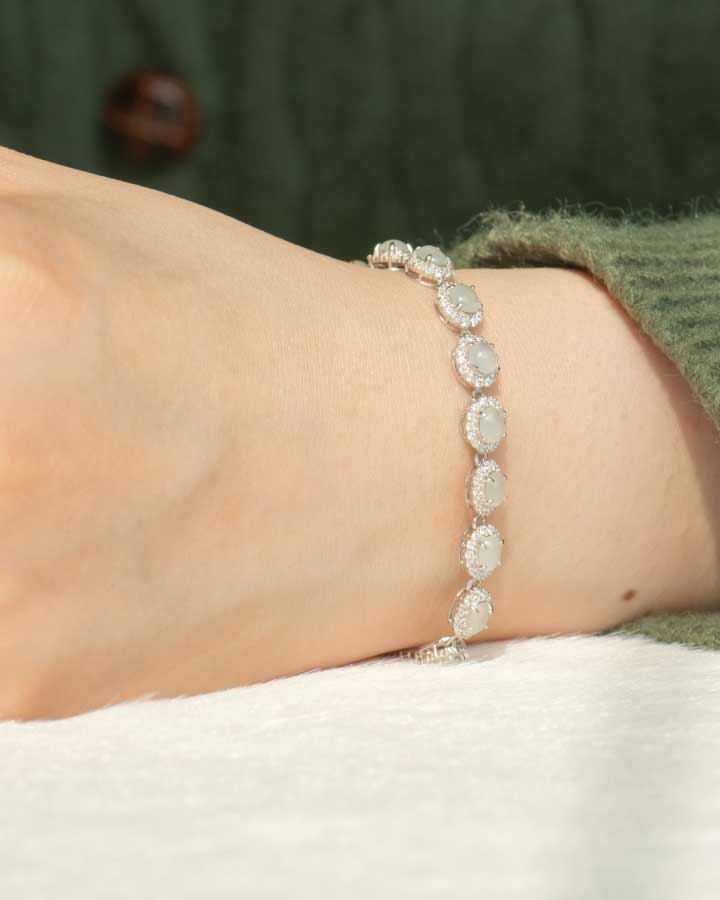 Icy White Jadeite Tennis Bracelet – Oval Cabochons, 925 Sterling Silver
