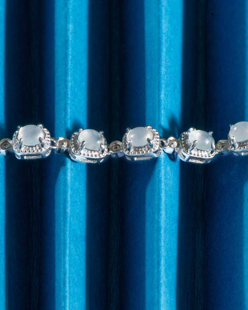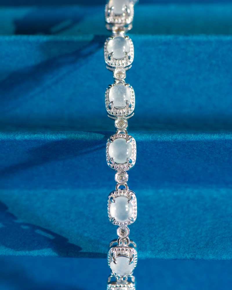 Be the first to review “Icy White Jadeite Tennis Bracelet – Oval Cabochons, 925 Sterling Silver”