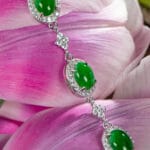 - The light: Jadeite’s inner glow is complemented by sparkling accents—controlled, pinpoint reflections rather than broad glitter.